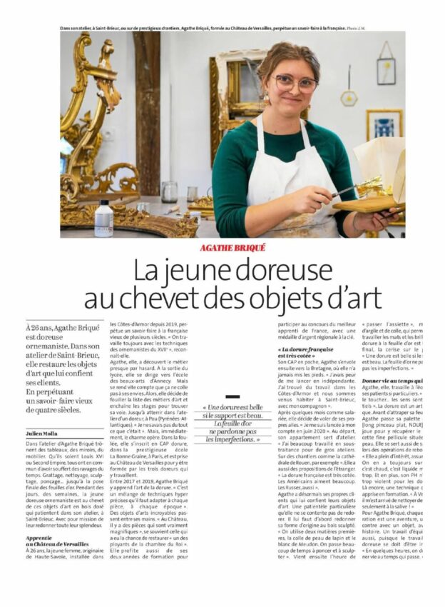 On vous laisse découvrir cette belle consécration ! Nous sommes très fiers de compter parmi nos membres, Agathe Briqué, doreuse ornemaniste, formée au château de Versailles, excusez du peu !