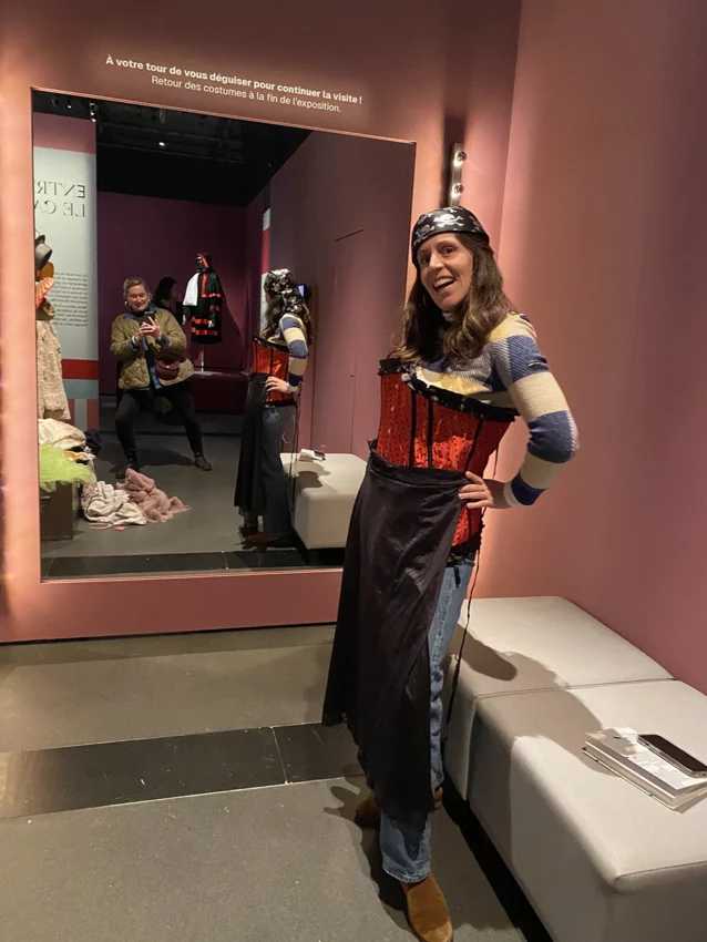 D’abord au Musée de Bretagne, où nous étions accueillis par Hélène Decaen, responsable Production expositions et éditions. Elle nous a présenté l’engagement de l’équipe chargée des expositions pour une muséographie plus durable, avec l’exemple concret de la très belle expo « Carnavals » (visible jusqu’au 16 novembre 2025, au Musée de Bretagne Les Champs Libres).